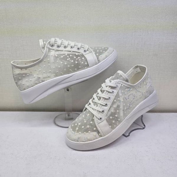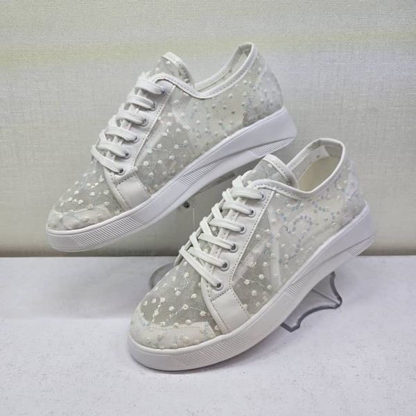 کتونی بندی مدل عروس ، انتخابی بینظیر برای کسانی است که به دنبال راحتی، استایل و کیفیت در کنار هم هستند. این کتونی با طراحی مدرن و بندهای مقاوم، به شما این امکان را میدهد که سایز و فیت کفش را دقیقا مطابق با پای خود تنظیم کنید و از قدم زدنهای طولانی لذت ببرید. رویهی این کفش از تور ساخته شده که باعث گردش هوای بیشتر و جلوگیری از تعریق پا میشود. زیرهی کتونی بندی از مواد سبک و مقاوم تولید شده تا فشار روی پاها کاهش یابد و در عین حال، دوام بالایی داشته باشد. این محصول مناسب برای ایستادن و حرکت طولانی مدت طراحی شده . طراحی شیک و رنگ سفید این کفش ، به شما اجازه میدهد تا آن را به راحتی با لباس عروس و لباس های مجلسی ست کنید و در هر جمعی بدرخشید. اگر به دنبال کفشی هستید که علاوه بر راحتی، ظاهری جذاب به شما بدهد، این کتونی بندی بهترین انتخاب است.